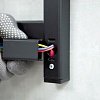 Для удобства ПЭК оснащен универсальным подключением. Полотенцесушитель можно подключить к сети питания, как справа, так и слева при помощи шнура с вилкой длиной 70 см и скрытым способом напрямую к проводке, заложенной в инженерную систему дома без использования штатного кабеля. Скрытый монтаж к электропитанию осуществляется через распаячные коробки, установленные справа и слева на коллекторе полотенцесушителя.